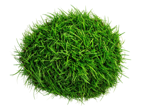 Overhead shot of a spherical clump of vibrant green grass against a black background