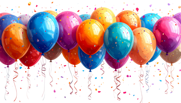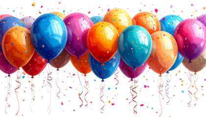 Colorful party balloons isolated on transparent background, high-quality PNG with bright vibrant colors, perfect for birthdays, celebrations, decorations, events, and festive designs.