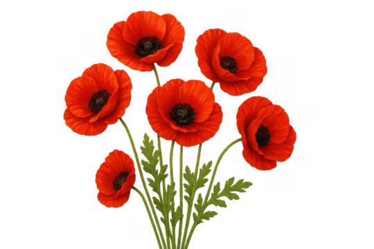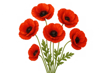 Red poppies bouquet illustration on transparent background symbolizing remembrance, nature, spring, and peace