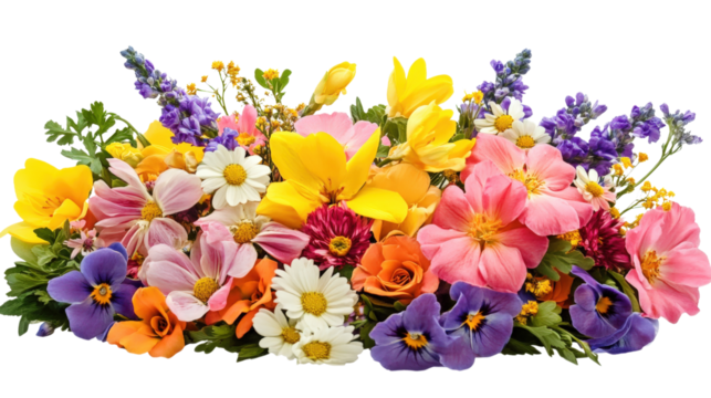 Colorful Spring Flower Bouquet isolated on a transparent background