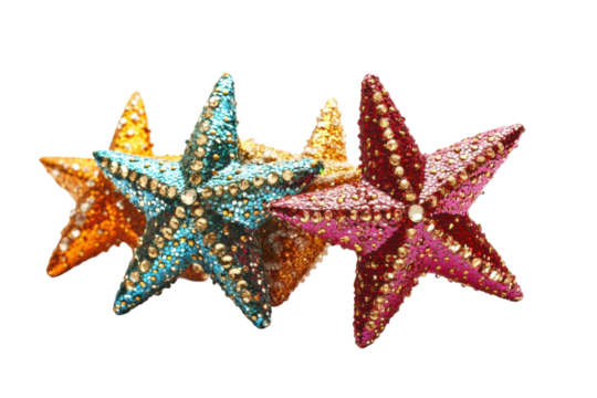 Shining Seastars in Vivid Hue: A collection of vibrant seastars showcase the radiant colors and intricate details, bringing a touch of marine wonder.