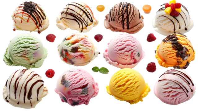 Ice cream explosions: vibrant colors, enticing toppings, mouthwatering spectacle, joy of indulgence.