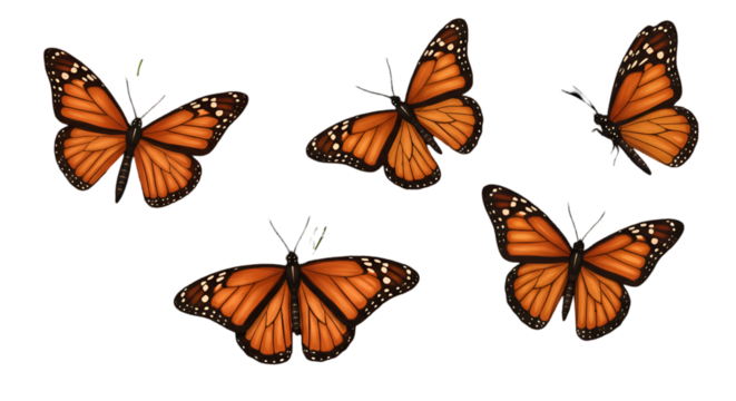 Isolated Orange Monarch Butterflies Illustration On Transparent Black Background