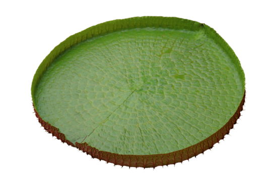 Isolated Giant Water Lily Leaf, a tropical water garden plant with unique veined foliage