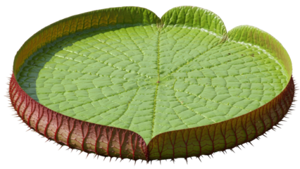 vibrant green Victoria amazonica lily pad with intricate vein patterns isolated on transparency background, showcasing its natural beauty and unique texture