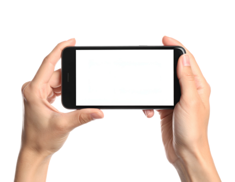 mockup Hand Holding mobile phone with white screen isolated on transparency background Template