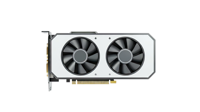 A high performance graphics card with a cooling fan, designed to enhance computer gaming and video performance, isolated on transparent background