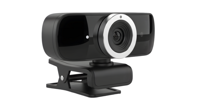 Black webcam computer accessory for digital video recording and streaming, isolated on transparent background