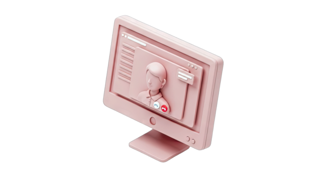 Pink Computer Monitor Displaying Video Call