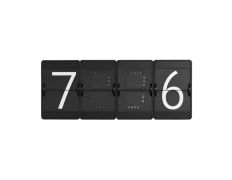 Digital flip countdown display with happy new year text on transparent