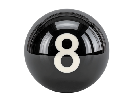 Classic Black  for Billiards, Front View, Isolated on White Background