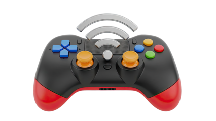 3D neon game controller icon with futuristic glowing lights isolated on transparent background for gaming
