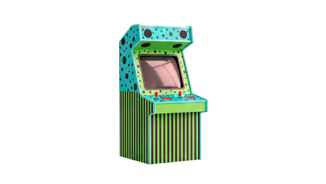 Retro Arcade Machine with Polka Dot and Stripe Design