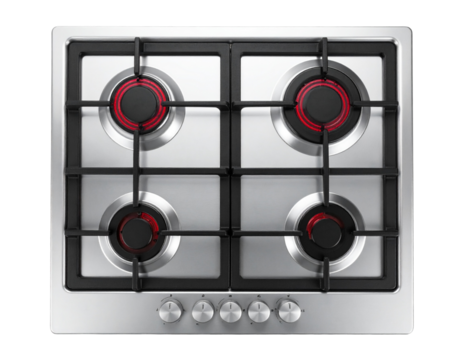 Overhead View of Electric Stove Top with Four Radiant Red Coil Burners, Glossy Finish, Isolated