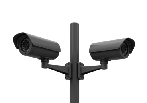 Gray CCTV security camera isolated PNG, surveillance system for safety and crime prevention on transparent background