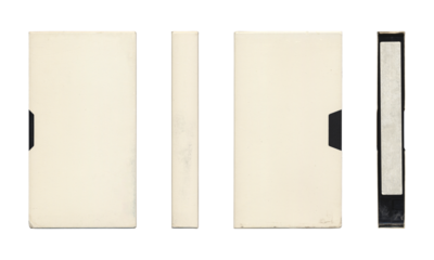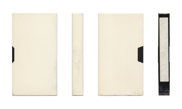 VHS videocassette in cover sleeve, multiple angles, mockup with blank space in transparent background