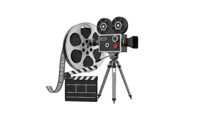 Vintage Film Camera, Reel, and Clapperboard