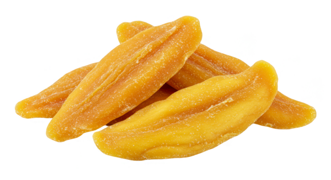 Isolated Transparent Background of Pile of Dried Mango Fruit Snack