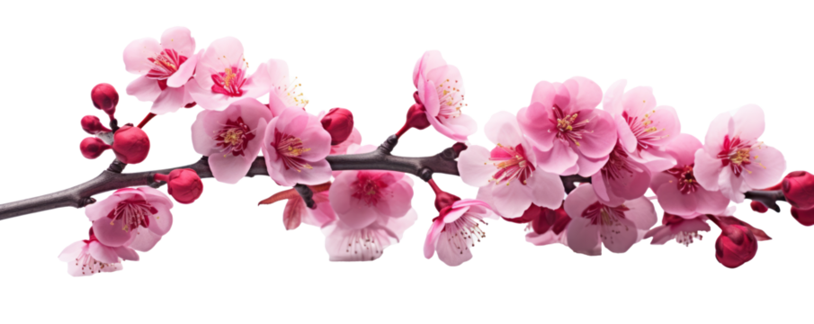 Traditional Vietnamese-Inspired Cherry Blossom Branch with Color Splash - Gongbi Technique, Light Red and Magenta Hues, Western Zhou Dynasty Elements, Soft-Focus Dansaekhwa on a Transparent Background