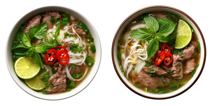 Delicious bowls of vietnamese pho transparent background culinary delight studio view