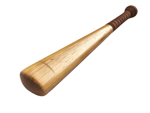 A close-up view of a wooden baseball bat, showcasing the fine craftsmanship and smooth finish, ideal for sports photography.