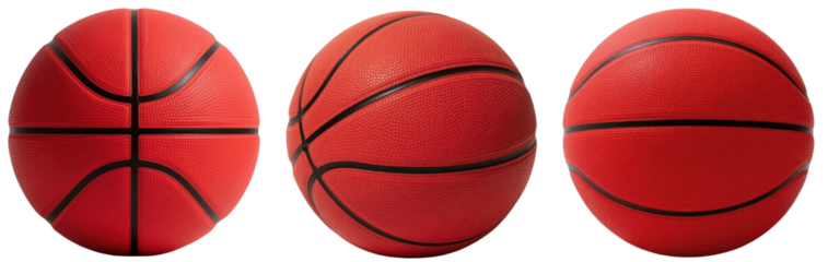 Three Basketballs Show Different Sides Isolated on Transparent Background