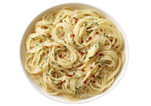 A vibrant, overhead view of a nest of spaghetti isolated on transparent background
