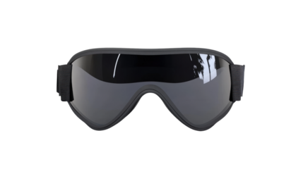 Black ski goggles for winter sport activity isolated on transparent background, front view