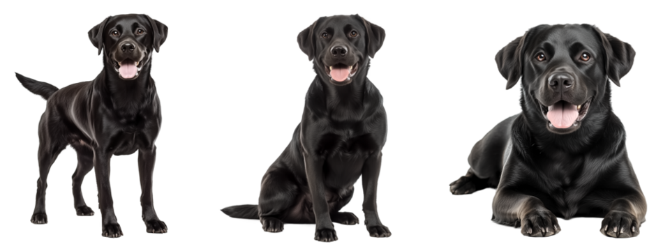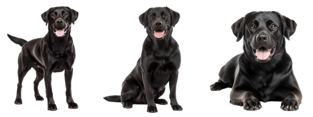Full body view of Labrador Retrievers dog in different poses, black color, isolate on transparent background