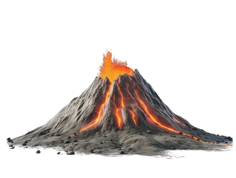 volcano with lava isolated on transparent background
