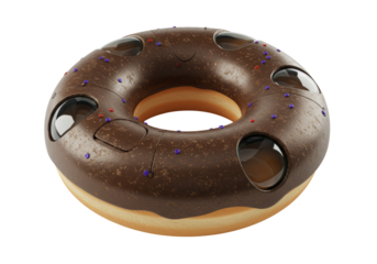 Isolated futuristic chocolate glazed donut with viewport windows, perfect sweet treat design