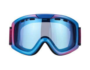 Blue/pink ski goggles reflecting light