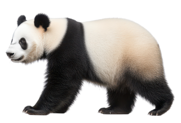 A playful panda walking in a natural habitat.