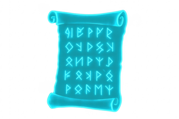 Glowing runic scroll showing ancient magical symbols, transparent background