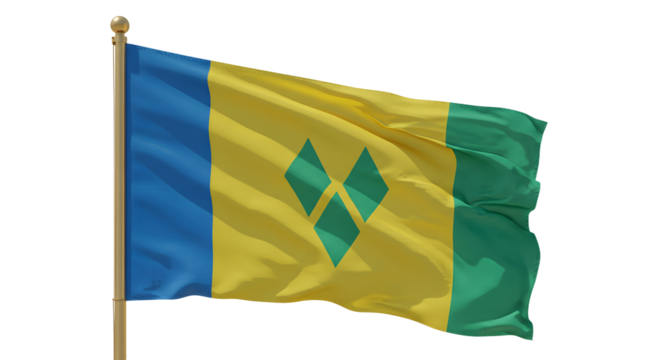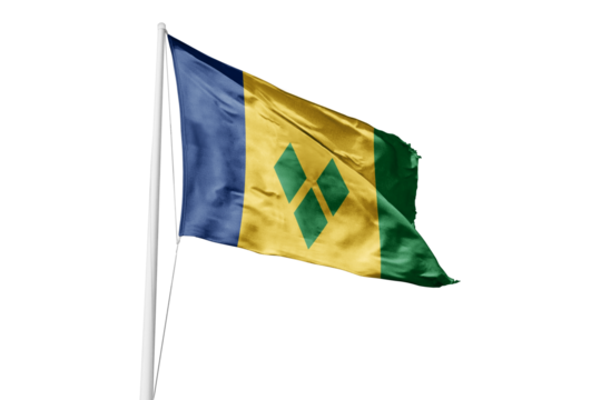 Flag of saint vincent and grenadine with no background, transparent png, flag on a flag pole waving in the wind, national symbol of saint vincent island in north america, picture of a flag