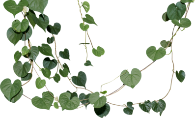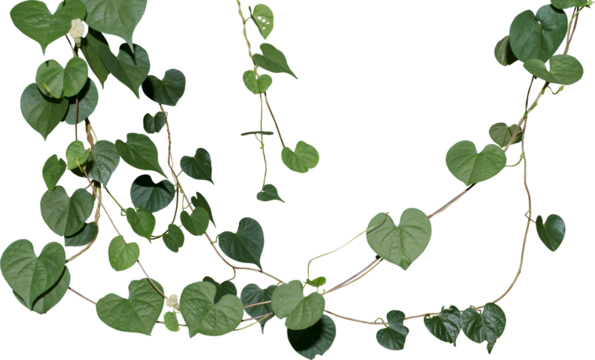 Collection of PNG. Green leaves Javanese treebine or Grape ivy. Jungle vine hanging ivy plant bush isolated on a transparent background.