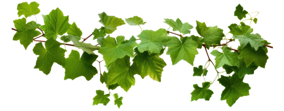 Delicate ivy vines curl and intertwine, their bright green leaves reaching outward, embodying nature’s resilience and ability to flourish in diverse environments, isolated on a transparent background