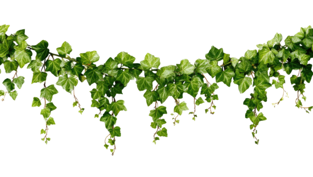 A delicate vine with vibrant green leaves gracefully curves across an isolated transparent background