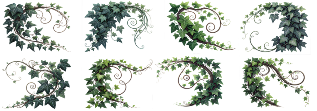 Silver vine climbing vertically against clean white backdrop, botanical graphic element