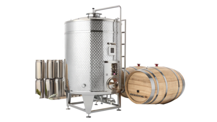 Stainless Steel Wine Fermentation Tank and Wooden Barrels