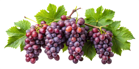 Grape with leaves isolated on transparent background.