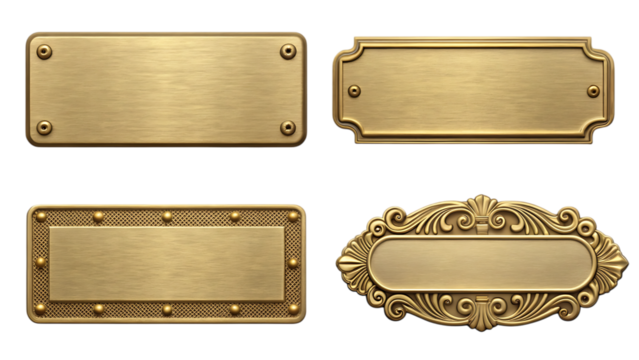 Golden Nameplate Sign with Embossed Text on Transparent Background