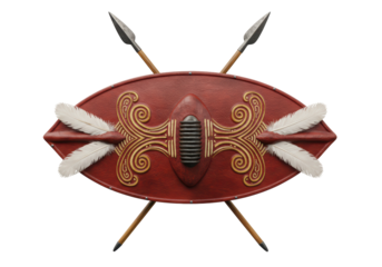 Bronze Viking shield isolated PNG, medieval warrior defense equipment with rivets on transparent background for historical reenactment