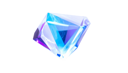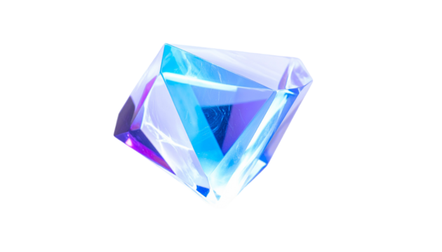 Faceted gemstone, luminous, blue, and violet hues, isolated on black