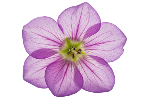 Delicate purple sweet pea blossoms a close up revealing intricate petal veins against a stark on transparent background