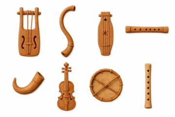 Rustic musical instruments: traditional wooden designs with a textured background