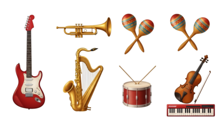 Isolated Musical Instruments Illustration on Transparent Background
