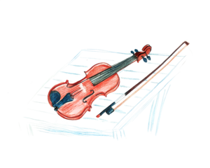 Colorful Child's Drawing of a Violin and Bow on a Stand