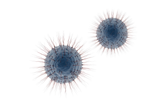 Detailed 3d rendering of a virus particle with spikes isolated on transparent background. Close up view of a biological cancer cell isolated on white background.