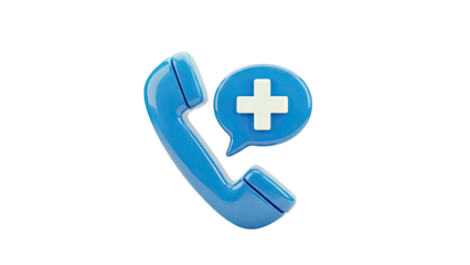 Blue Phone Receiver with Medical Cross in Speech Bubble